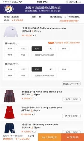 3、学校指定校服供应商线上商城,学生根据学校直接确认指定款式并购买。