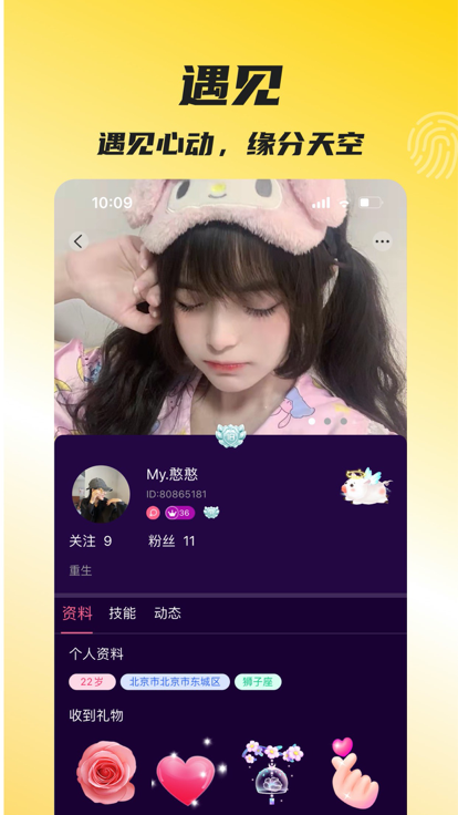 2、在缘分的天空中遇见自己心动ta,帮助用户在线进行交友畅聊互动。