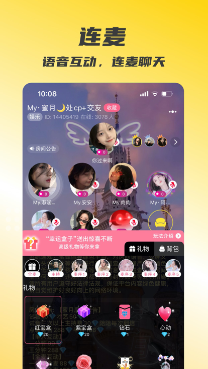 2.我们在软件内可以根据声音认识新的朋友,整个过程既新颖又有趣,乐趣十足。