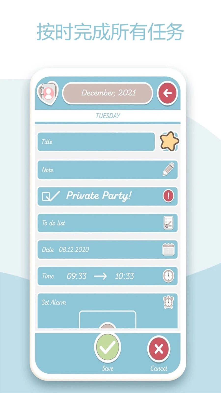 2、帮助用户们把自己容易忘记的事情记录在这个软件上并且设置提醒事项。