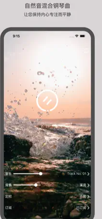 1、 集钢琴音乐和自然背景音于一体的创意效率和健康工具。