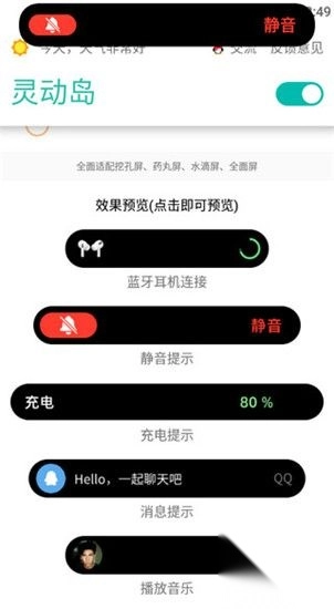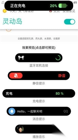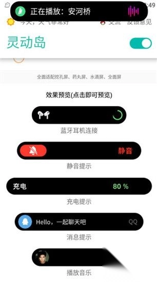 2、安卓灵动岛基本上还原了苹果灵动岛的特色,同时还进行了不同的优化可以带来更好的体验。