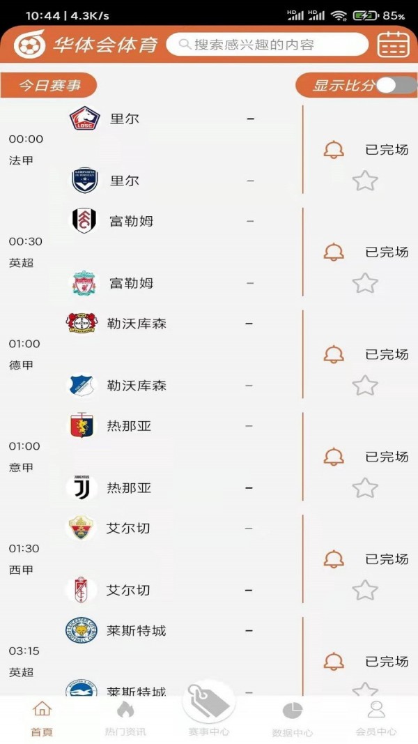 支持的赛事类型也比较丰富,欧冠、西甲以及中超等应有尽有,还有详细的球队以及球员信息。