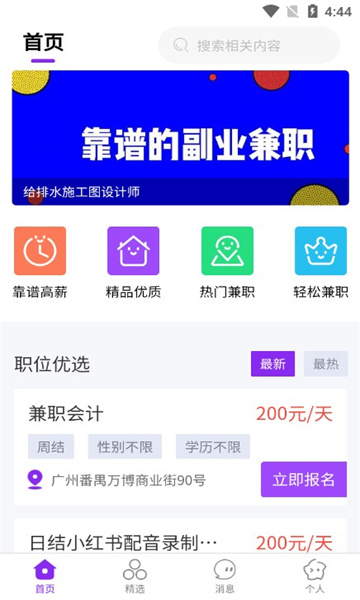 2、搜索和筛选功能非常好用,能根据用户寻求精准提供招聘信息。
