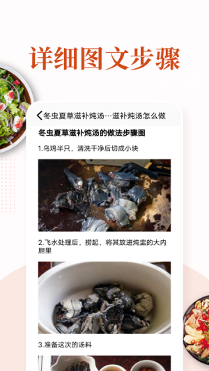 这里所有的图文介绍都是十分的详细的,还有详细的视频可以在线进行观看,使用户可以在这里成就一代大厨。