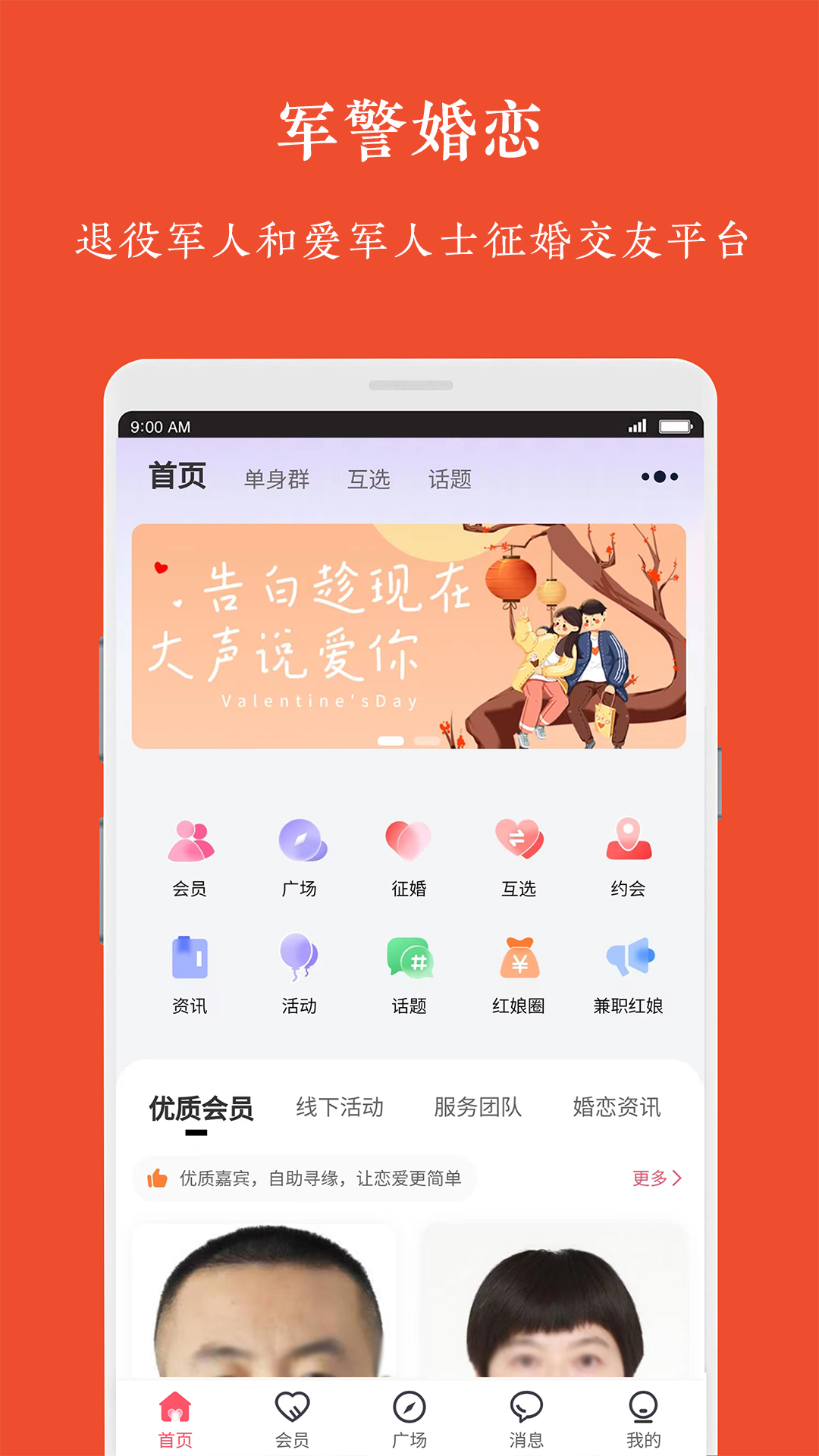 1、这是一款退役军人和爱军人士征婚交友的平台,多种社交活动自由选择。