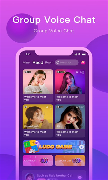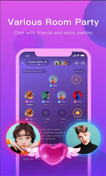 2、多人同时在线尽情嗨,群聊房间等你随意互动连麦畅聊。