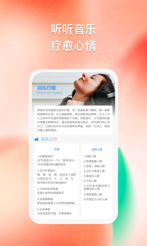 3、享受收听舒缓音乐疗愈心情,保持好更佳的心理状态。