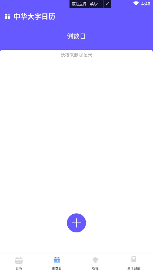 2、中华大字日历还可以进行倒计时服务,可以帮助用户进行重要事件的提示。