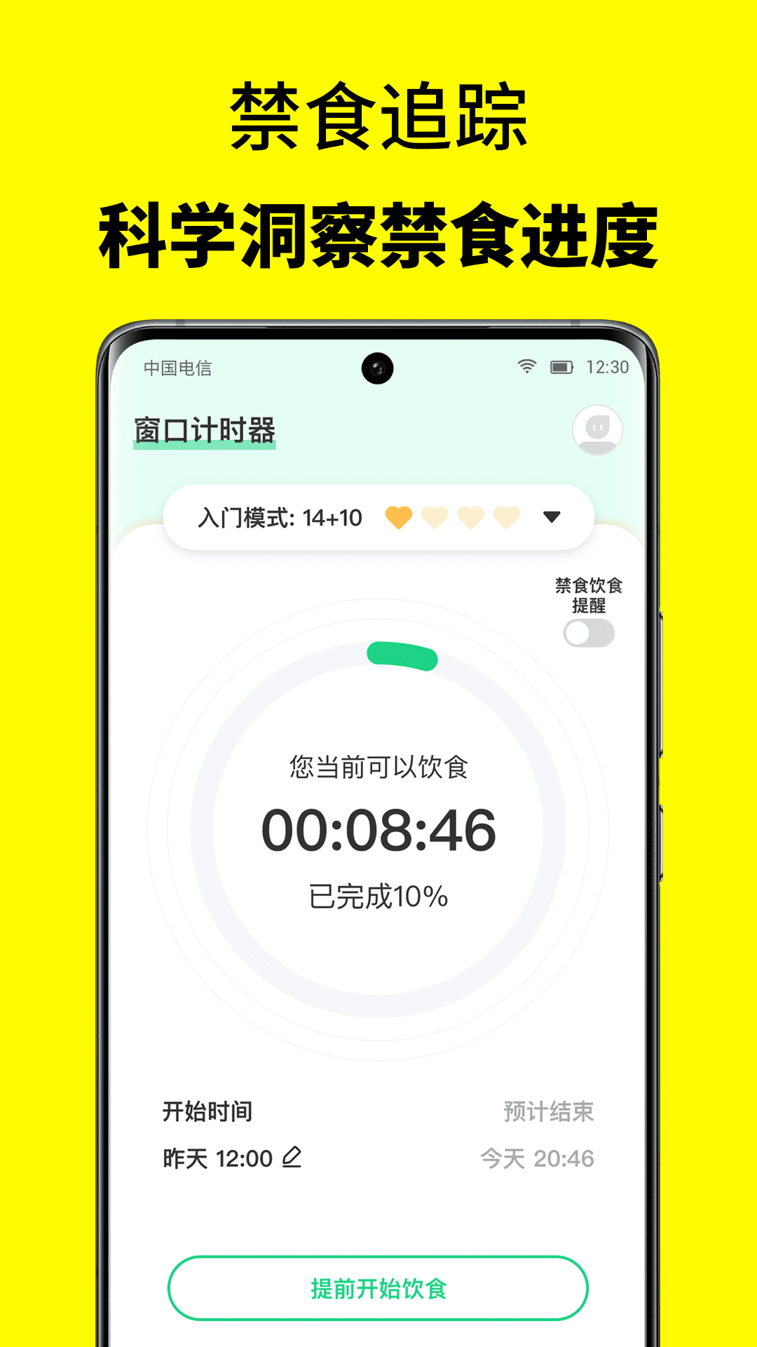 2、52轻断食还可以进行禁食追踪,帮助用户进行科学洞察禁食进度。