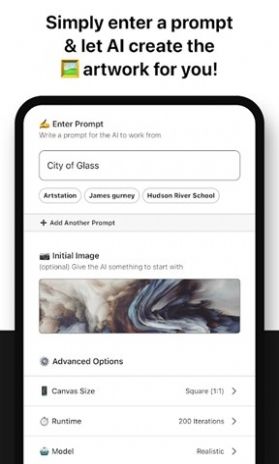 starryai软件是一款非常简单的壁纸艺术品制作app,你可以在这里一键制作,你也可以按照你的喜欢来制作出好看的壁纸或者艺术品,你可以根据提示制作出一个不可思议的艺术,你只需要在tarryai中输入一个符号或者任何的的东西,然后选择你喜欢的样式。