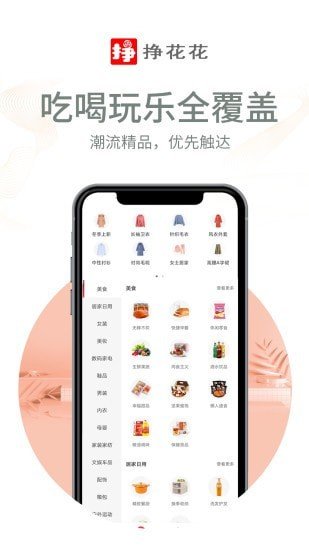 挣花花是一款非常好用的线上购物的软件,在这个软件上面用户们可以看到很多优质的商品资源能够轻松的挑选,还有不少的生活服务也是能够在这里看到的,这里有很多的购物分类都是可以看到的,这里的商品都是经过专业机构检测的,所有的商品都是全新的正品,给用户们的生活带来了很多的方便。