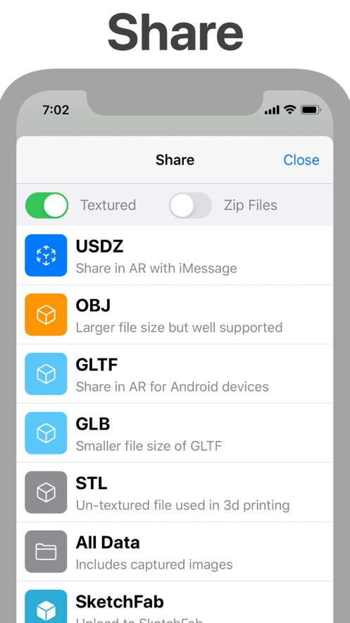 2.功能很全面,一键扫描的方式就可以完成不同的物品建模,可以自定义保存,也可以一键分享;