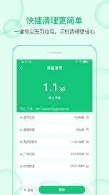 2、可瞬间的释放手机更多的内存空间,让大家玩游戏、聊天可以更加的畅快。
