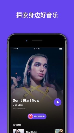 即时识别歌曲,与您喜爱的艺术家分享令人激动的音乐发现之旅。