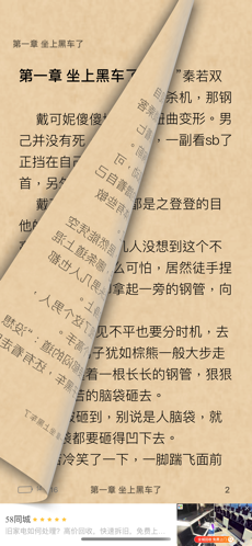 2、流畅舒适的仿真翻页效果,书架分类管理,种类齐全;