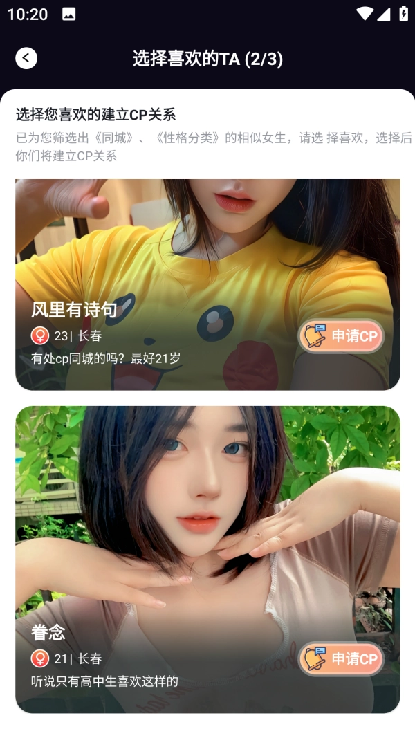 1、使用这款app进行在线匹配,一键筛选自己的有缘人。