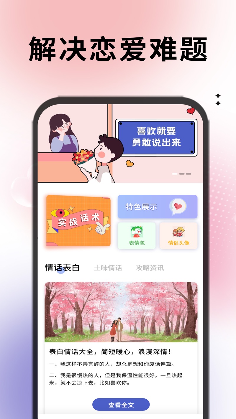 我们可以使用这款app进行各种恋爱课程的学习,使用户不用担心聊天会冷场,需要的可以下载试一试。