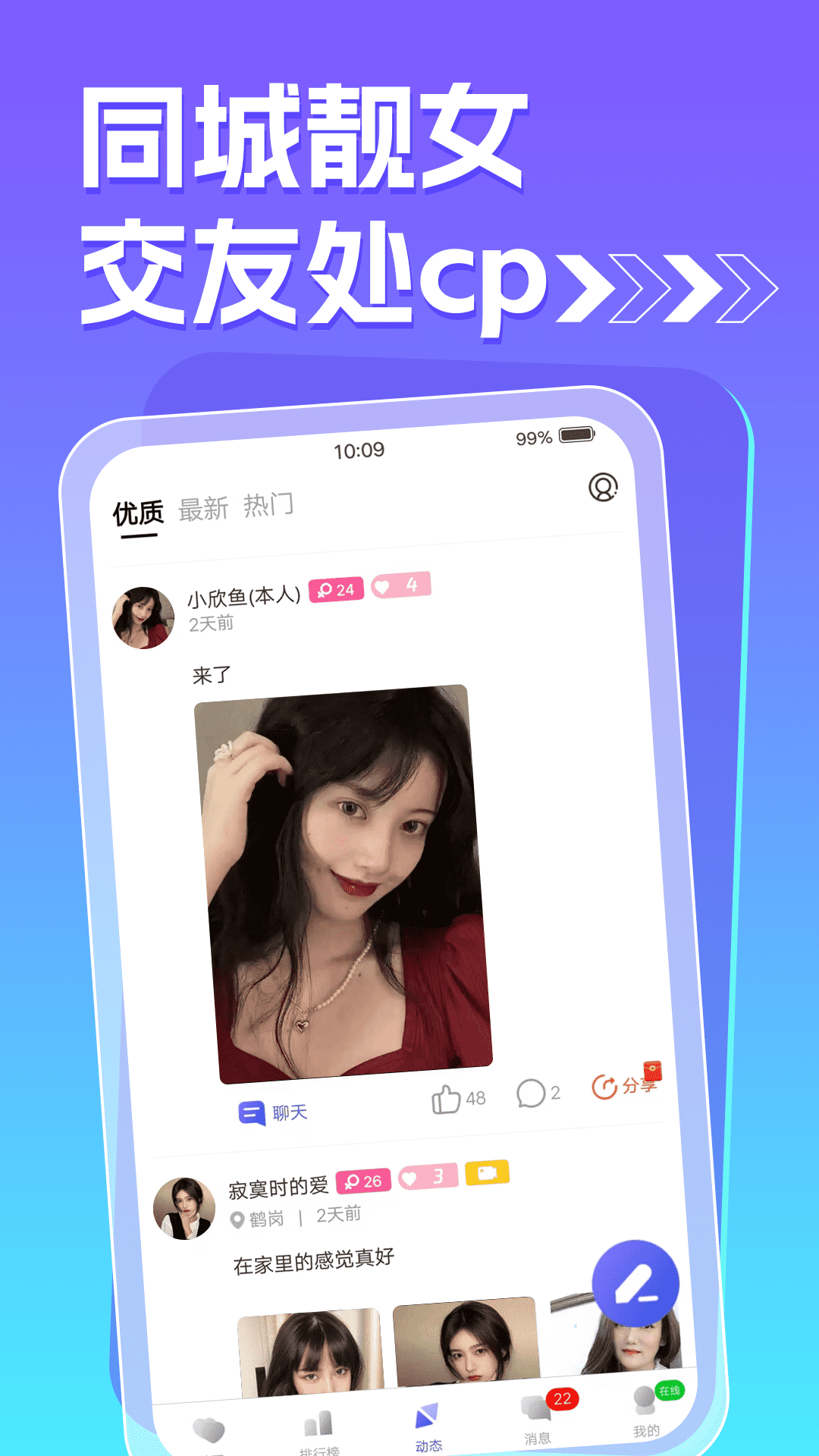 3、有抢手的话题,让你能够即兴的交朋友,缘分的互动的综合平台。