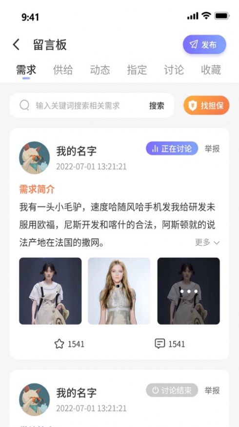 2、商家或用户发布的一些需求,也可随心发送一下自己现在的心情,也可给作者留言。