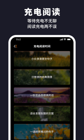 1、等待充电无聊时,可以阅读英文和经典语录句子等,玩玩色彩生活、生日、九宫格切图等,既充电又别有趣味;