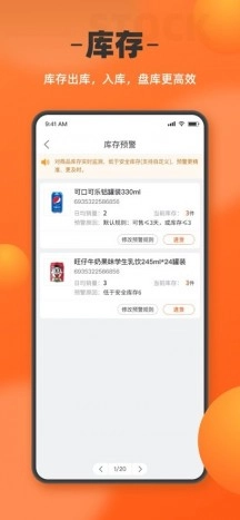2、库存管理:仓管人员可通过APP实时了解库存情况,调整库存,扫描出入库;