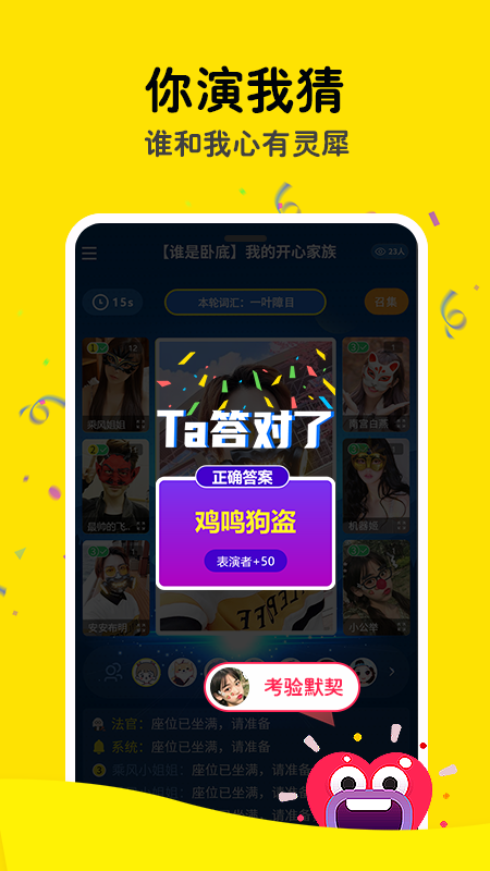 1、有谁是卧底、你演我猜等经典桌游和综艺娱乐玩法可供用户选择;