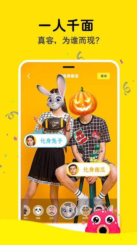 【假面化身 一人千面】真容,为谁而现? 基于AR视频技术,在陌生人面前,以假面化身示人,更好的保护你的隐私;