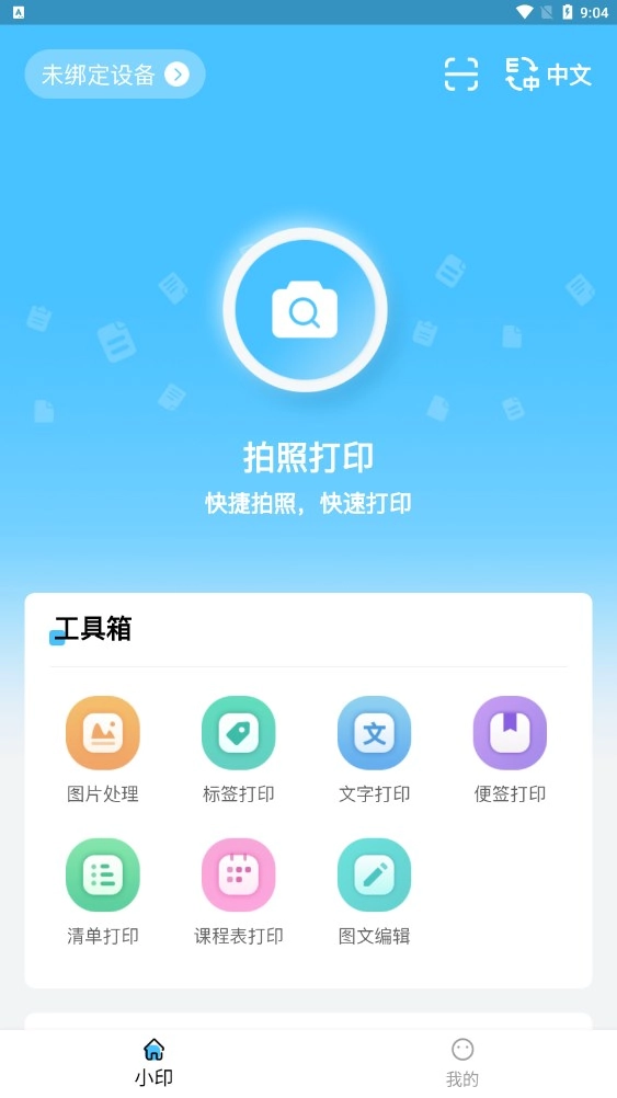 1、提供拍照打印、图片处理、标签打印、文字打印。