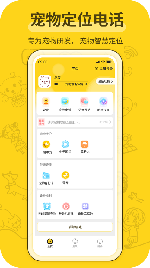 2、还有查询运动信息以及电话语音交流,寻宠,夜灯功能等功能,再也不怕宠物走丢了;