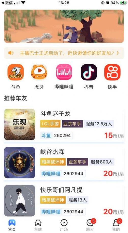 主播巴士app,游戏陪玩的开黑软件,打开软件就能查看到首页、车站、广场、聊天和我的个人中心等多种功能都是非常的齐全的。你可以去查看到发车排行榜、人气排行榜等多种榜单都是可以去查看到的,实时的最新数据都是仅供大家参考的,你还可以去查看到排名、昵称以及服务人数等多种信息的。