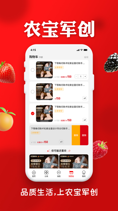 农宝军创商城是一款非常好用的线上购物软件,在这里用户们可以看到丰富的商品都是可以享受优惠的,能够很好的满足用户们的使用需求,帮助用户们随时随地的完成商品的评价,用户们还可以根据商品的评价来选择和考虑是不是要购买,有需要的用户们千万不要错过了,快来这里下载使用一下吧。