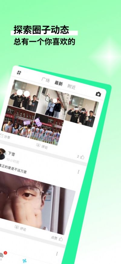 2、探索圈子动态,这里都可以任意去进行不同的动态信息查看,所有动态一目了然;