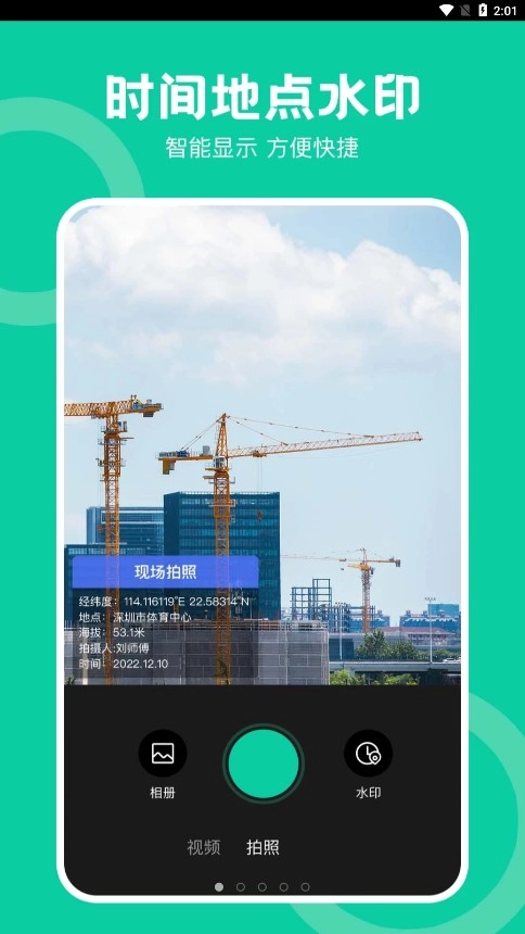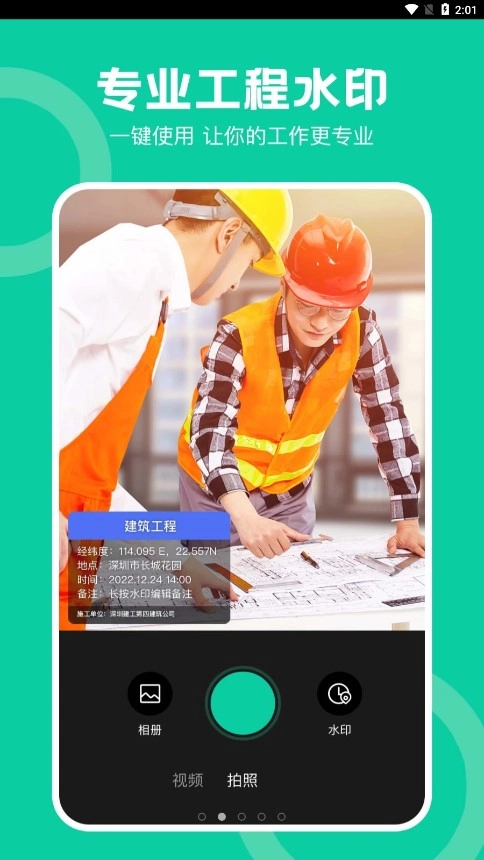 2、实时添加工程位置和拍摄时间,快速打卡;