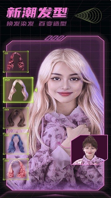 2、智能为照片中的人物更换发型,尝试不同发型的样式。