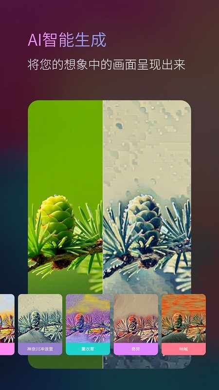 2.无需任何的经验和技巧,各种不同艺术风格的作品都可以转化为一幅美丽的画作;