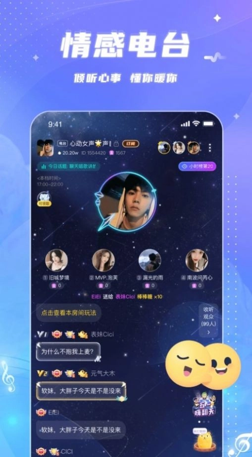 1、情感电台:这个软件之中有更多的语音房可以加入的吗,还有更多的倾听心事相关的服务。