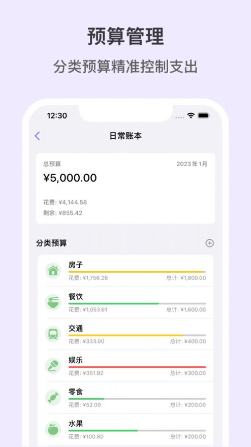 2、预算管理:设置账本和分类预算,合理控制支出。