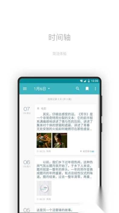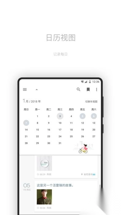 1、像查看日历一样查看页面,这样可以快速知道哪一天写了日记,快速回放。