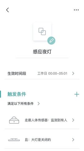 3、打造智能场景,做一个快乐的懒人。智能场景可以互联所有智能硬件,根据你设置的启动条件,一键开启所有相关智能设备。