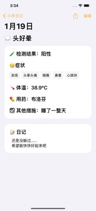 1、一款专为有需要的用户记录患病症状的日记本软件。