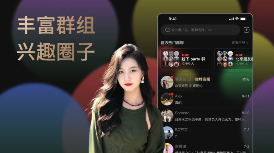 3、推出了多个兴趣圈子群组,能够根据兴趣爱好寻找交友对象。