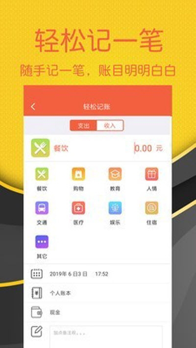随手记账,收支类型精细划分一目了然;