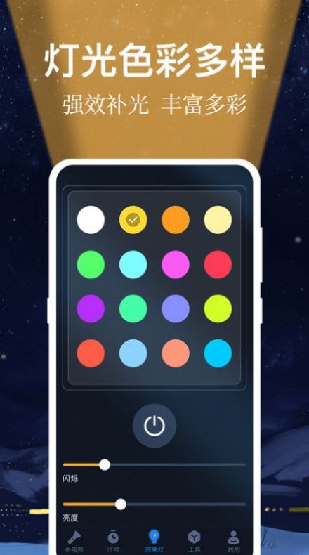 小熊强光手电筒这是一款功能全面的手电筒app,用户可以使用这款app进行快速照明,轻松在线进行一键秒开,这里拥有全面的功能,我们可以按照自己的需要进行自由选择使用,为用户的生活带来很大的便利,并且还可以在 这里进行各种灯光色彩的选择,为用户带来更多的趣味,这里所有的功能全部都是免费的。