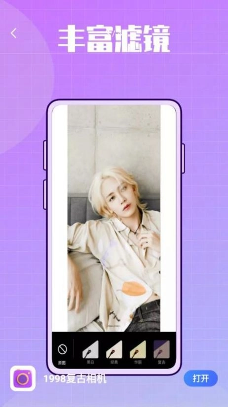 1998复古相机这是一款可以在线进行手机拍照的手机app,这里拥有丰富的功能,用户可以使用这款app进行各种精美照片的在线拍摄,这里拥有多种拍摄模式可以在线自由选择使用,使用户可以在这里感受不一样的优质服务,并且这里拥有丰富的滤镜可以自由选择切换,操作也是非常的简单,需要的可以下载试一试。