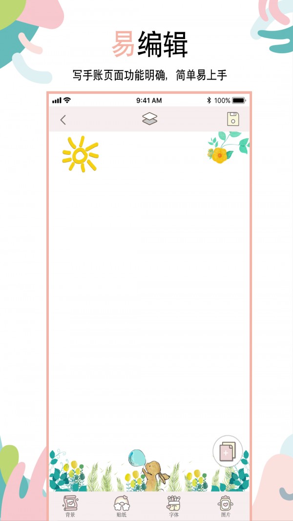 3、这里有很多功能,比如精美的背景模板,笔刷材质,账本贴纸,都是免费使用的。