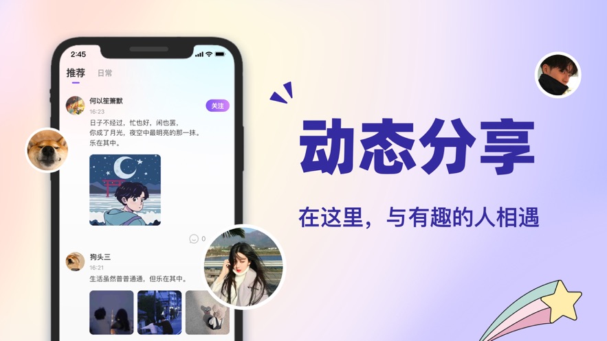 3、和懂你的人自由互动,找到同频知己,在这里 与有趣的人相遇。