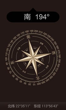 3、黑色指针指向太阳,红色指针指向正北。它为您的旅行导航、经纬度定位、海报测量、实时海报显示、房屋定位。