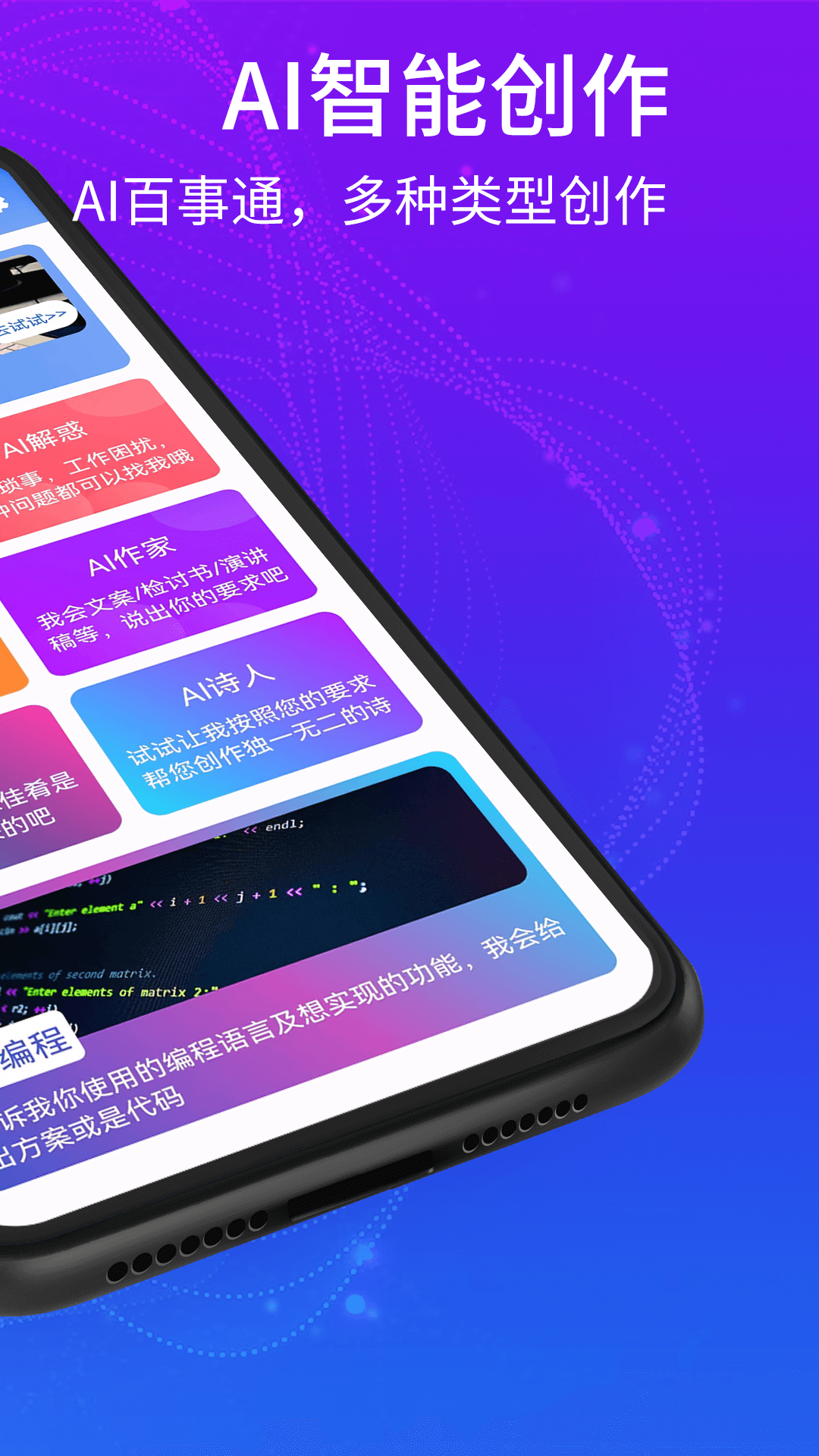 2、我们提供比如自动写诗、写情书,写代码等多种智能聊天功能。