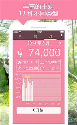 1、触摸步数、消耗的卡路里、距离(米)、行走时间或速度(千米/小时)来显示带有该信息的曲线图。